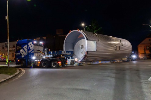 Transport a instalace pivovarských tanků v Plzni