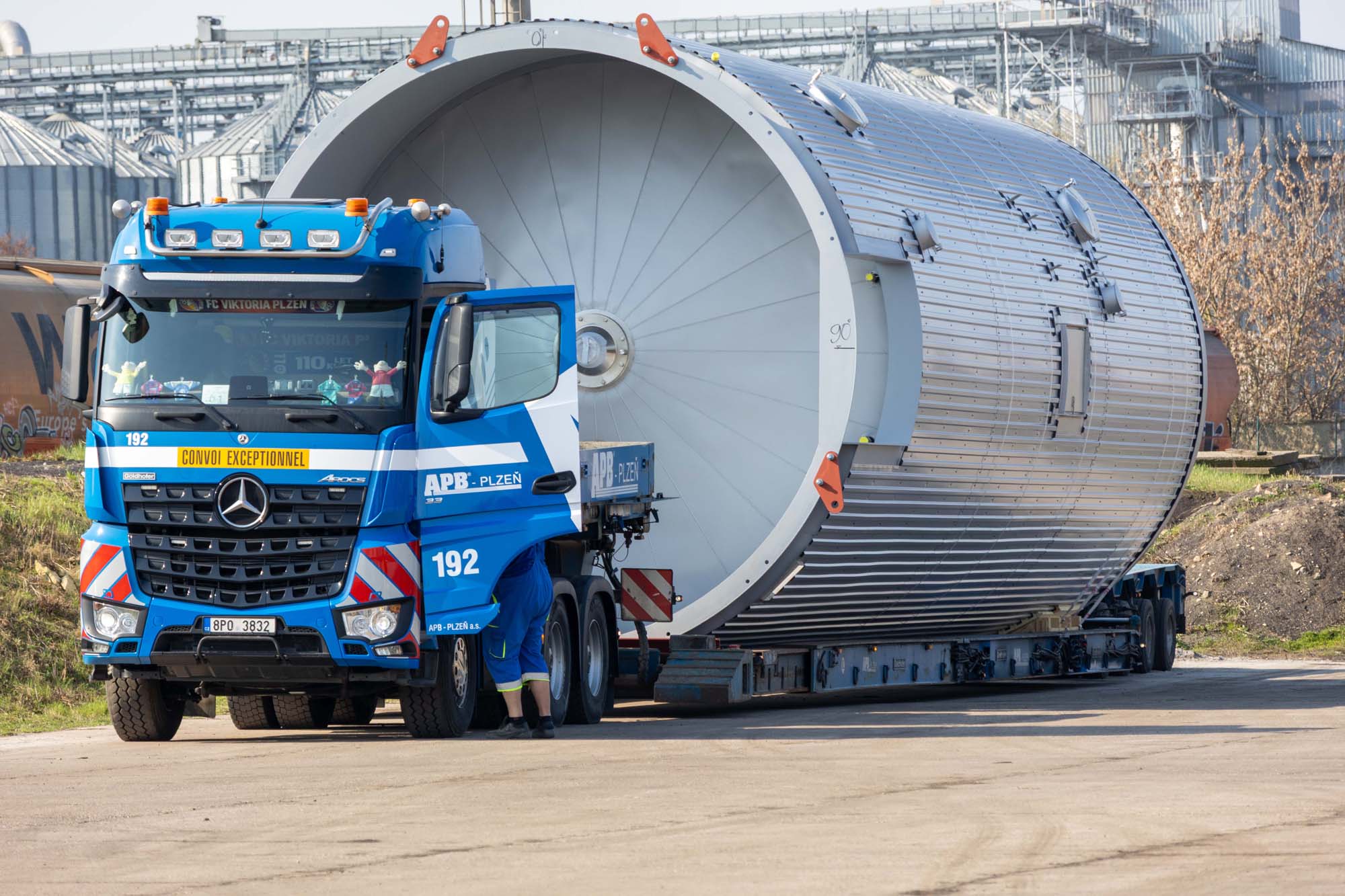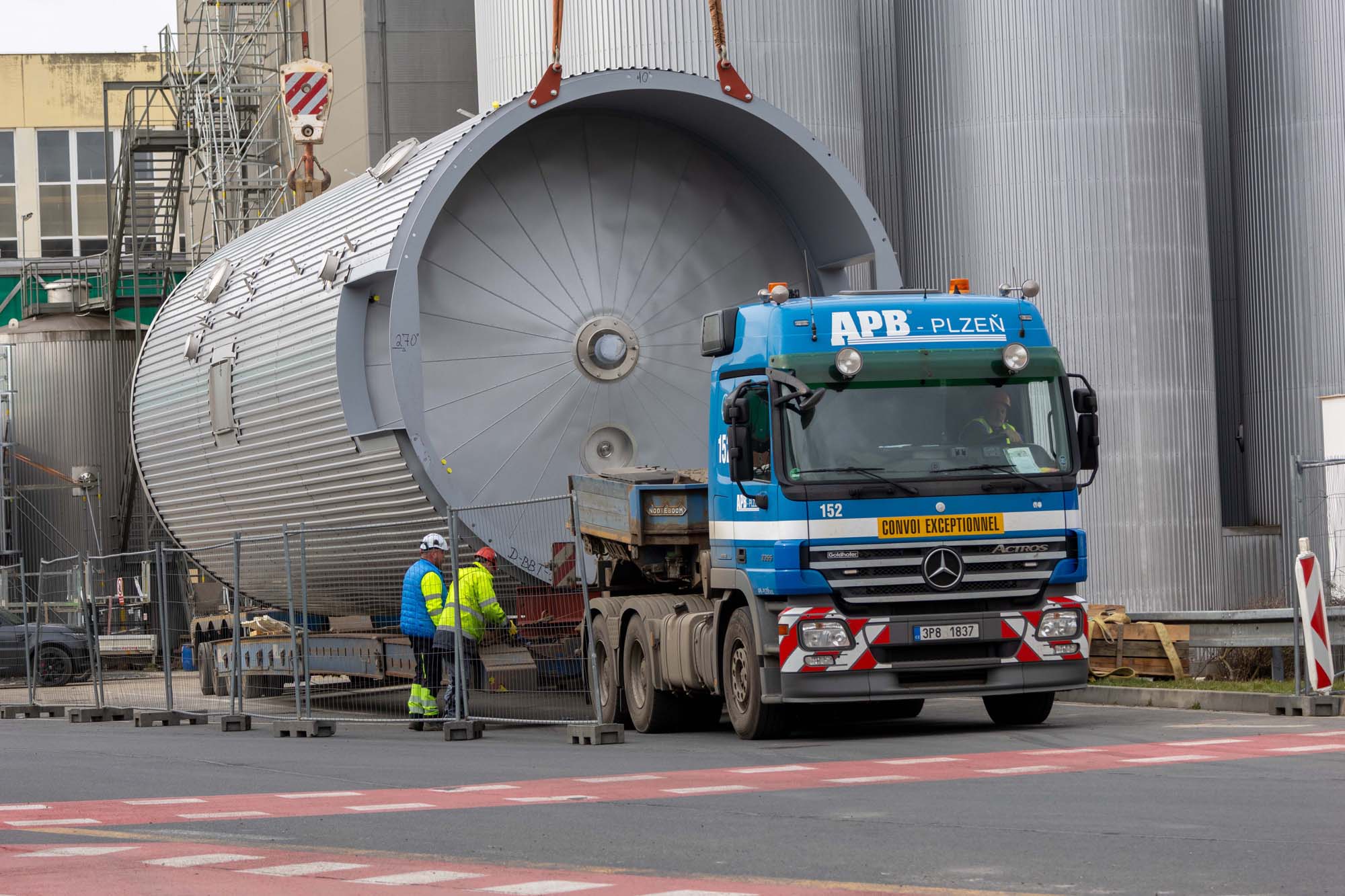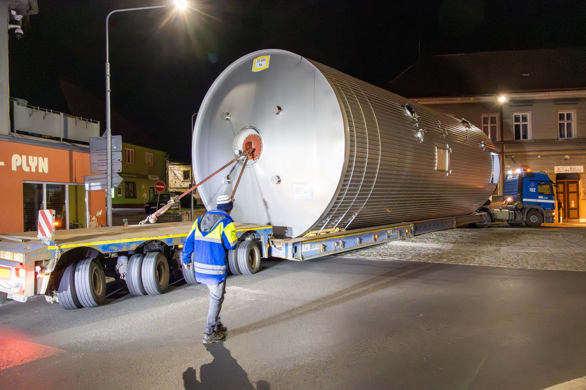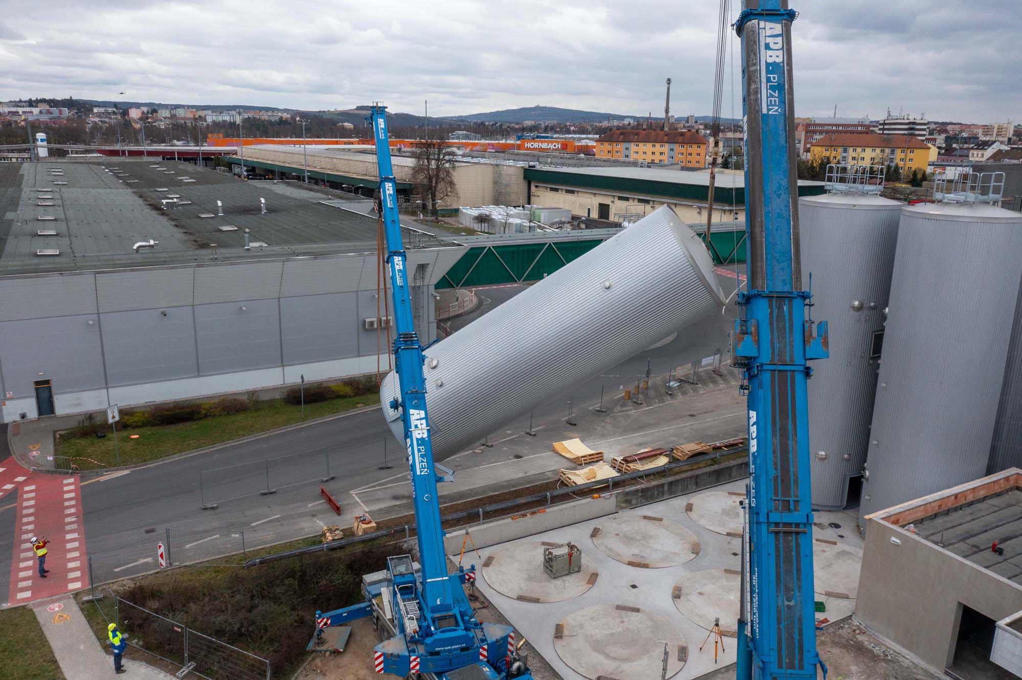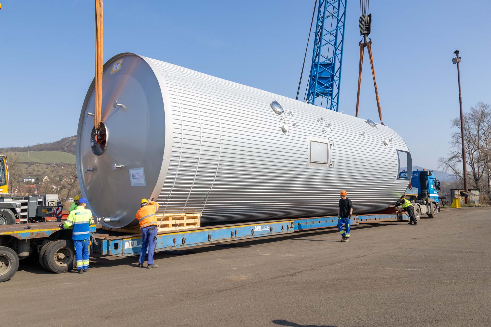 Transport a instalace pivovarských tanků v Plzni