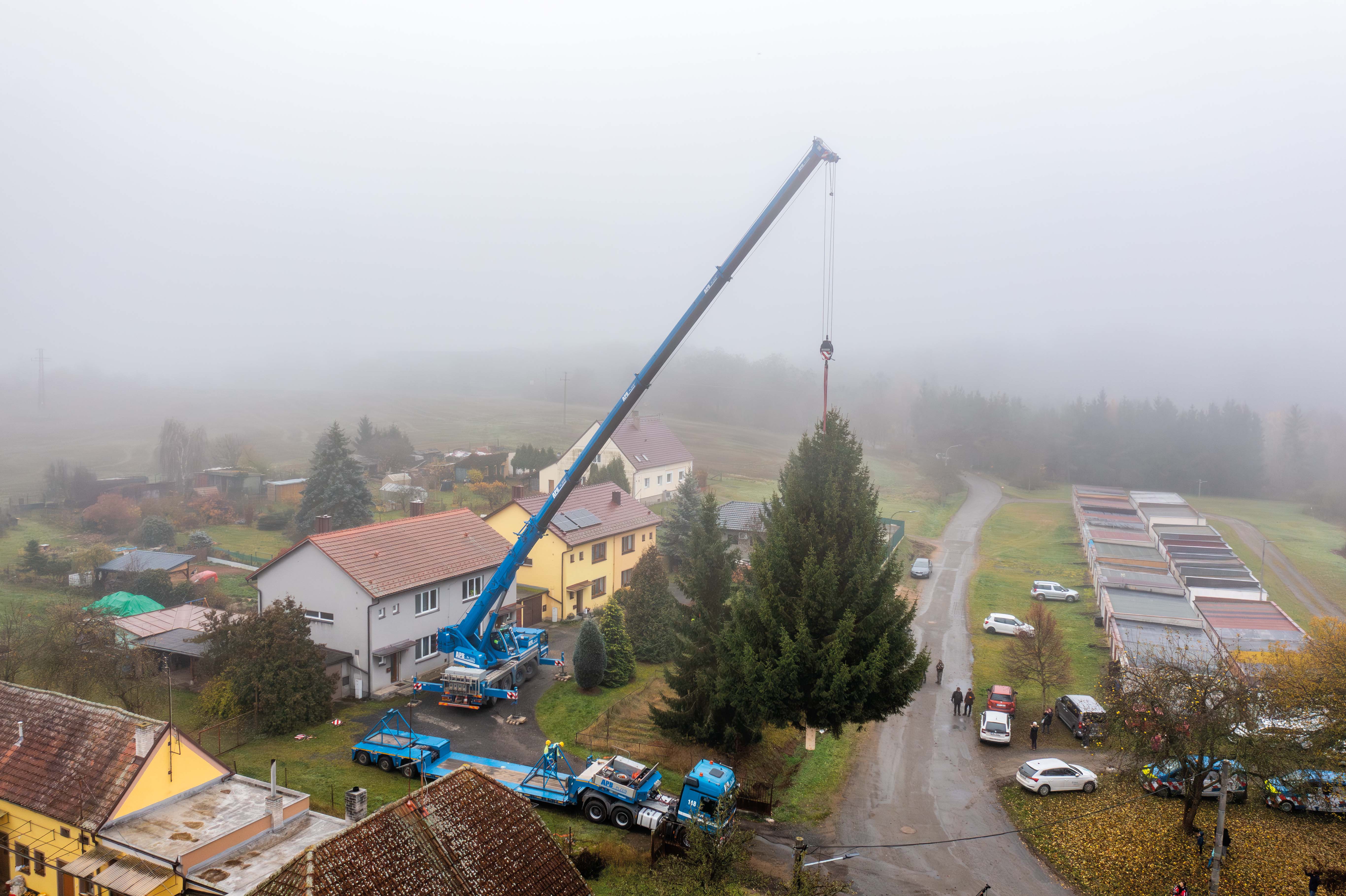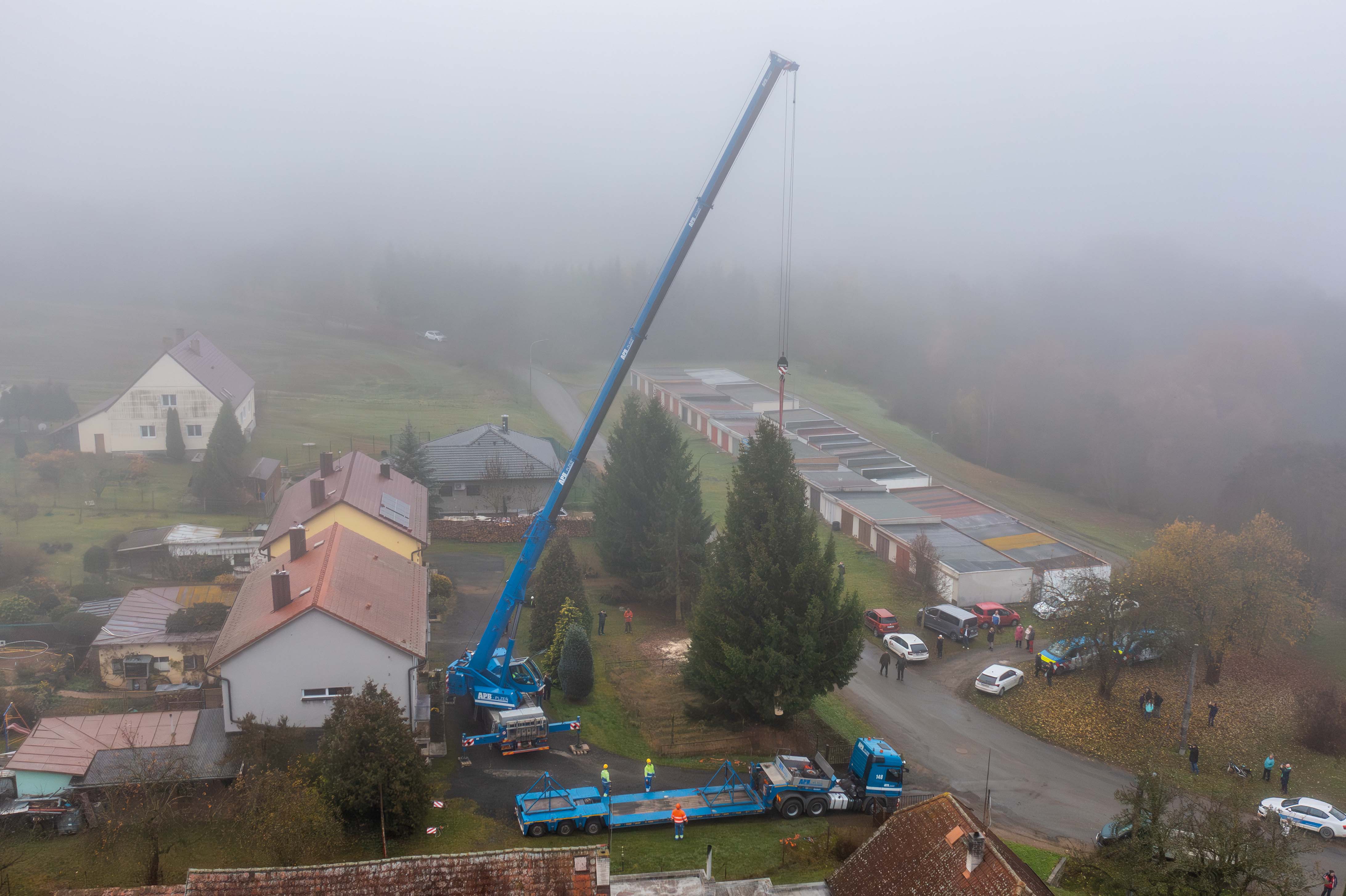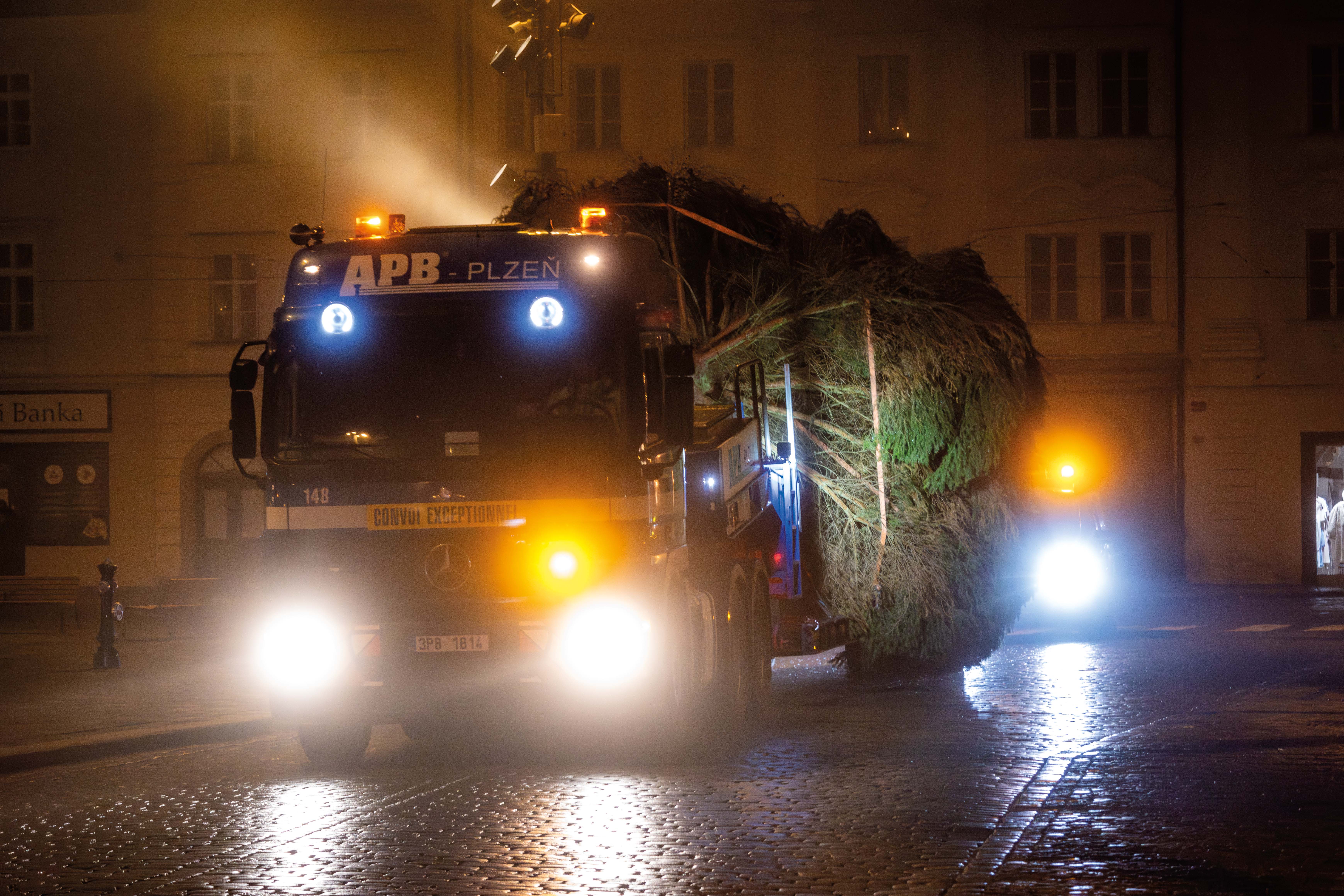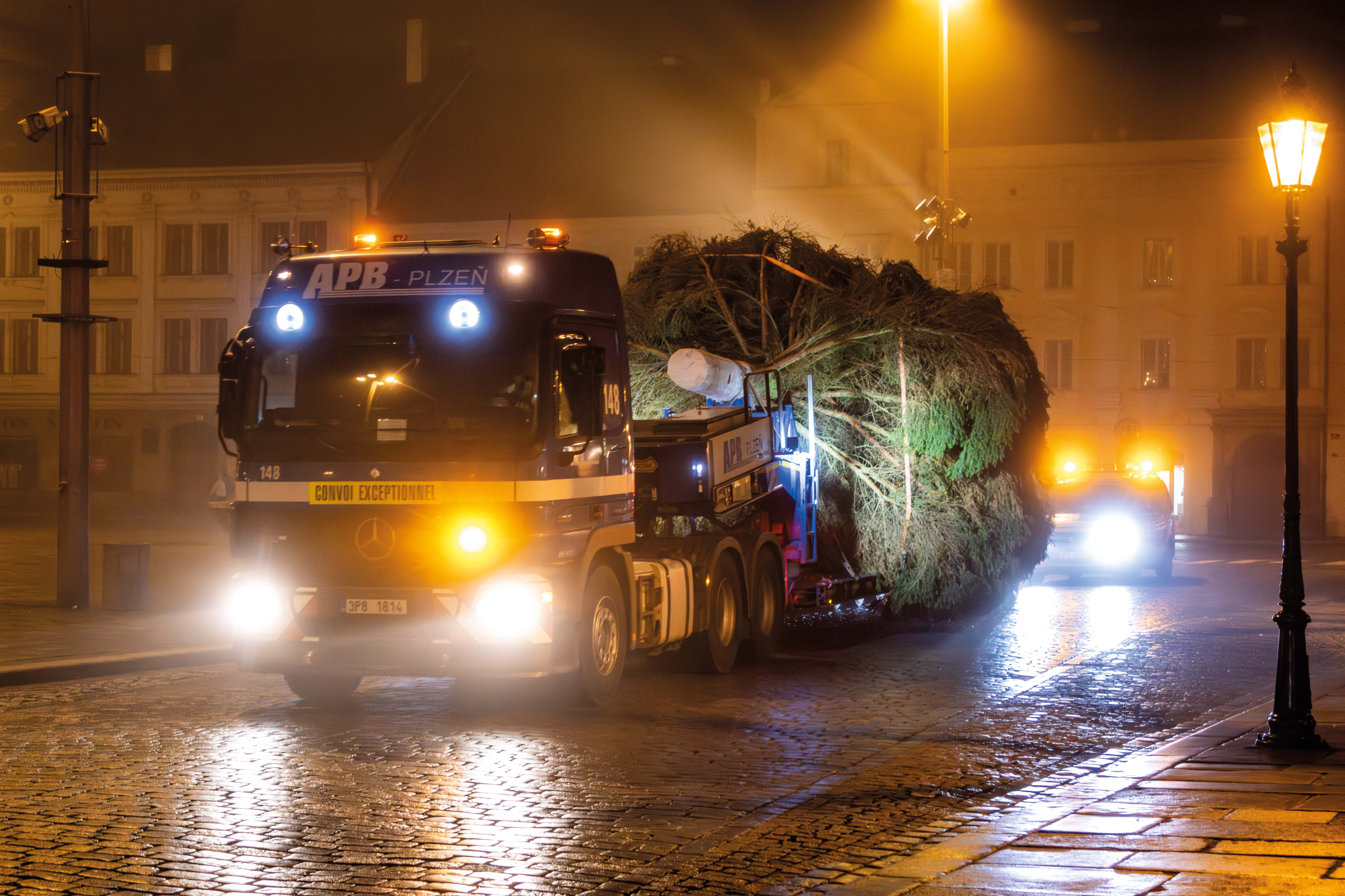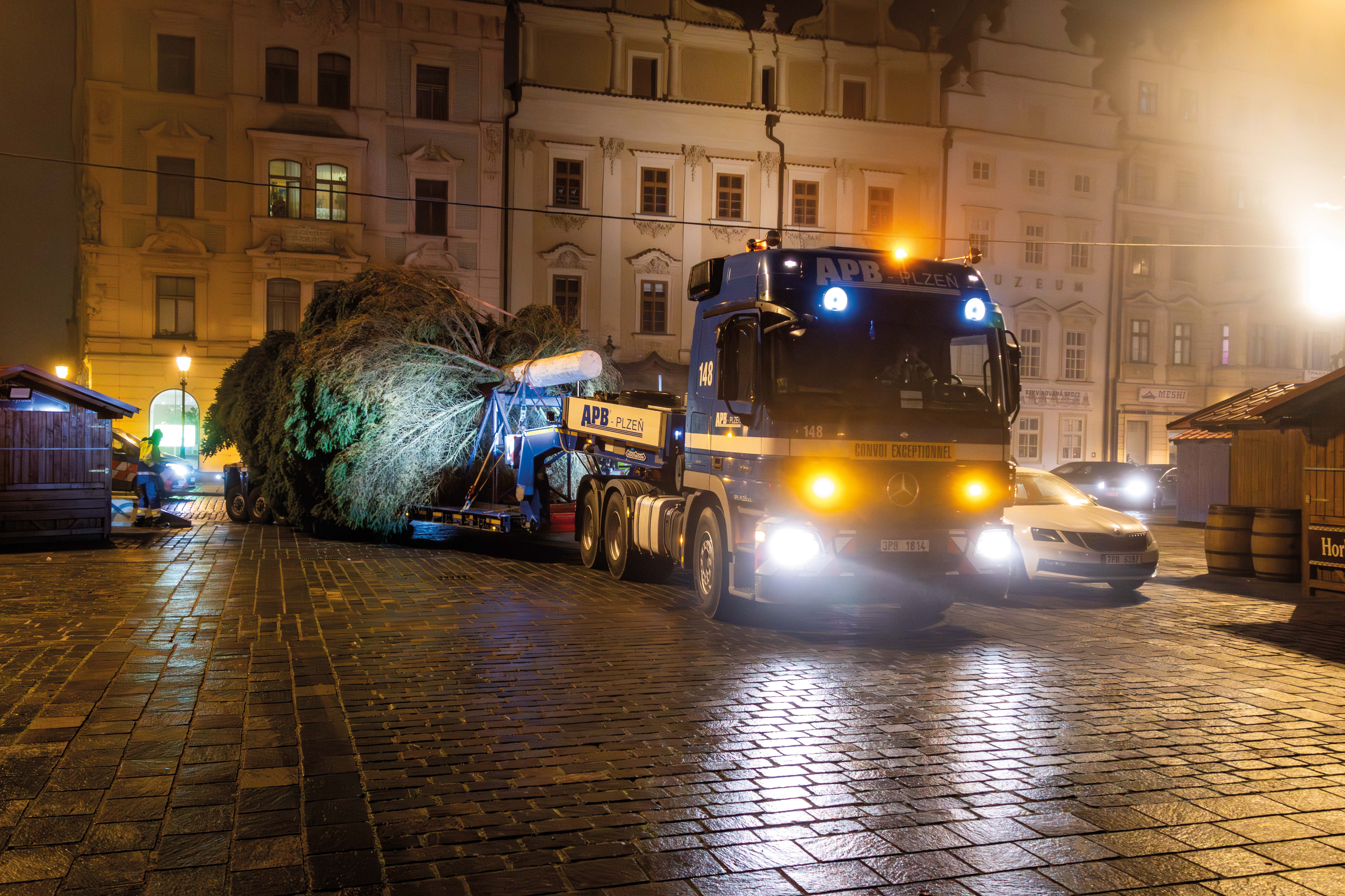 Cesta letošního vánočního stromu do Plzně začala ve Stodě, kde jsme pečlivě připravili nádherný smrk ztepilý pro svou slavnostní cestu. Pomocí výkonného autojeřábu LIEBHERR LTM 1070 jsme strom bezpečně naložili na podvalník a vydali se s ním směrem na plzeňské náměstí Republiky.